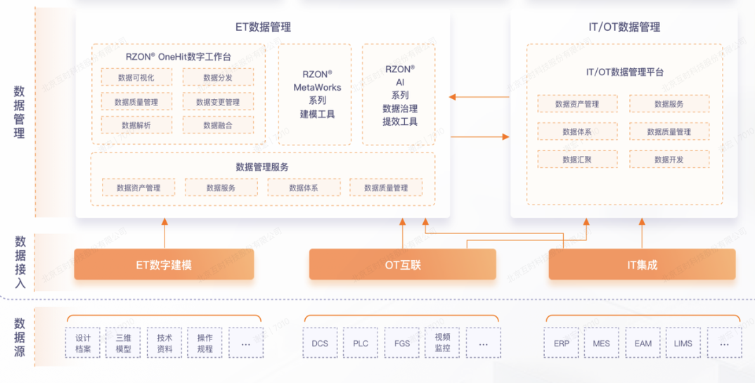 - ET数据强调数据更新能力,主要体现在运营阶段技改技措或改建时,需要及时进行更新维护,与现场保持一致。OT数据则一般没有数据更新的必要;IT数据在数据仓库、数据中台这一层也极少有更新需求。