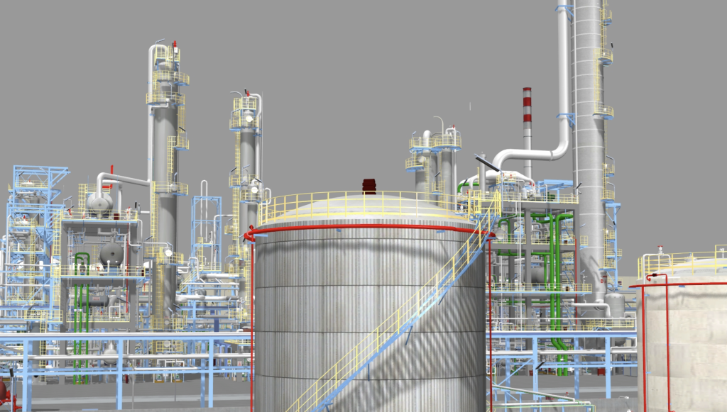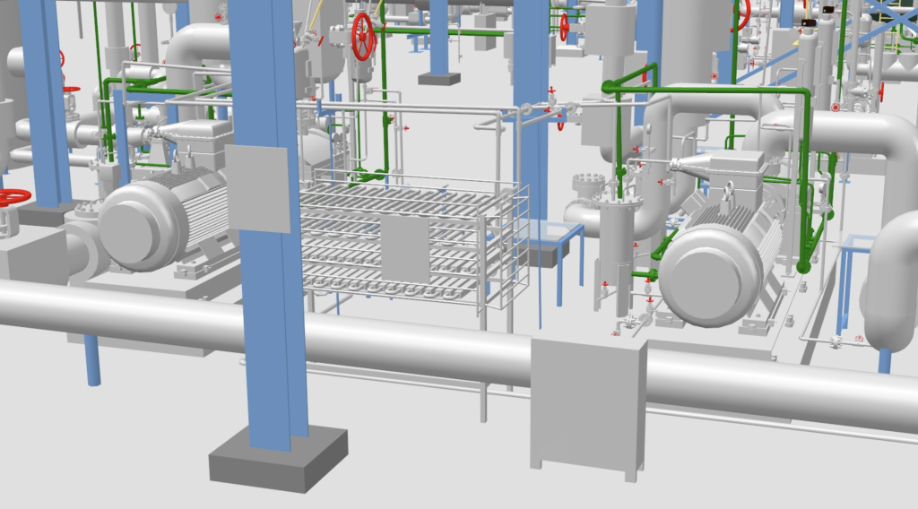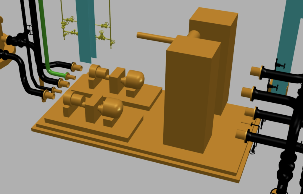 高精细度模型表面更加平滑、细节更加丰富,能够更好地表现原型的复杂性和微妙之处,使得模型看起来更加精致和真实。设计院一般采用参数化建模方式,交付的模型往往都是参数化体元,较为粗糙。如下图所示,设备往往会被建模成一个“块状物体”,而不能真实体现细节尺寸。