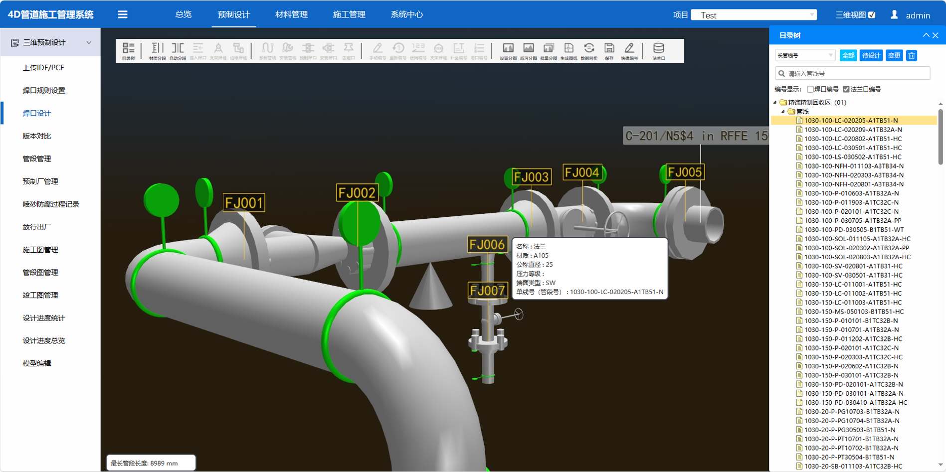 截至目前,该项目中,4D系统共计管理装置数量70多个、工程量达389万寸径、管线数量超5万条、焊口数量90万个,大幅提高了管道施工的效率和质量。