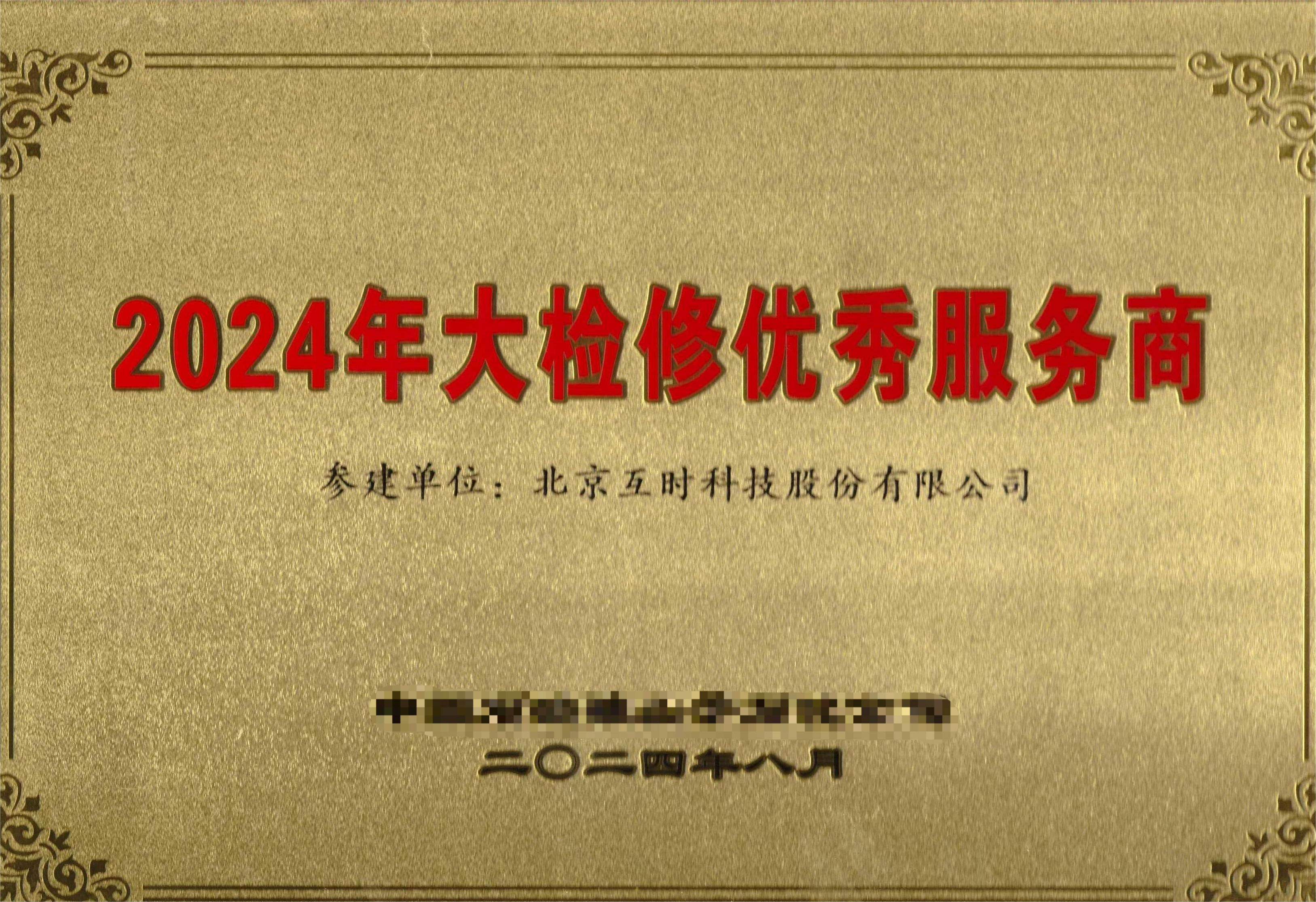 某石化企业是我国西部地区重要的油气引进、储运、加工战略枢纽,也是全国唯一一家入选国务院国资委“创建世界一流专业领军示范企业”的炼化企业。今年八月,在该企业年度大检修表彰大会上,互时科技凭借卓越的产品功能和优秀的服务意识,荣获该企业颁发的“2024年大检修优秀服务商”荣誉。